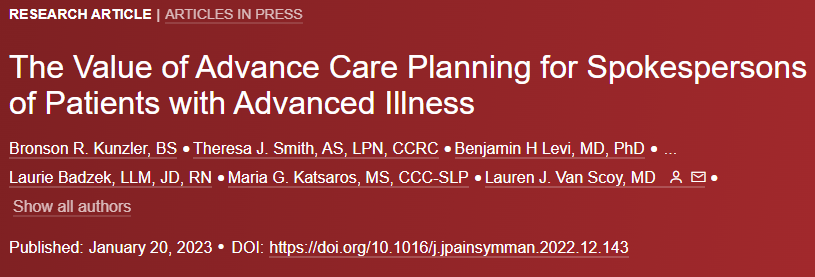 And so…we wanted to point to a new article in JPSM that adds some interesting perspective to this debate. The short story is that both written Advance Directives and the more general process of Advance Care Planning can help at least some surrogates when they are eventually faced with making difficult decisions in the surrogate decision maker role.