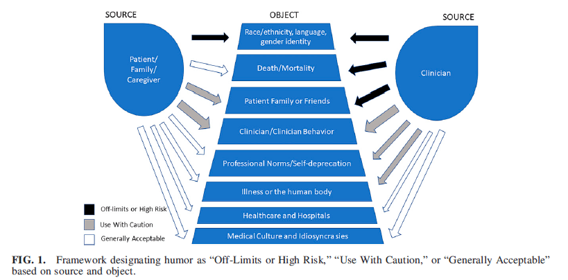 This is an interesting thought piece exploring the use of humor in the clinical context. The authors define 8 categories of humor with recommendations for/against as a function both of the category and the source of the humor (patient/family vs clinician).